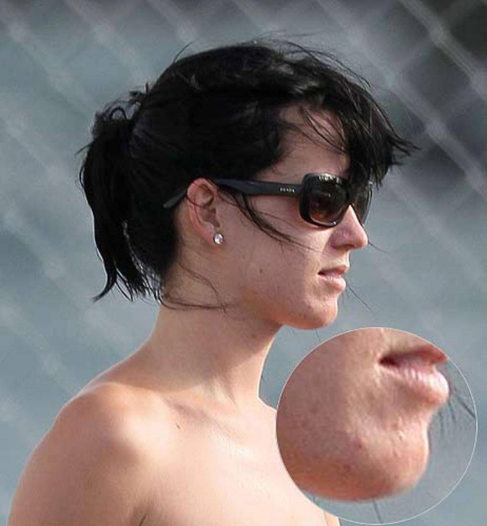 凯蒂满脸的粉刺显示了她不怎么注重脸部清洁与保养,知情者爆料说因为她很常化妆都不卸妆,弄到皮肤出现病变。