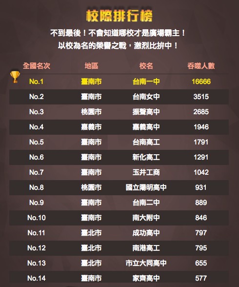 好啦,網址在這裡,小編要去幫自己的母校打拼了,你們就等著看成功高中得第一吧!