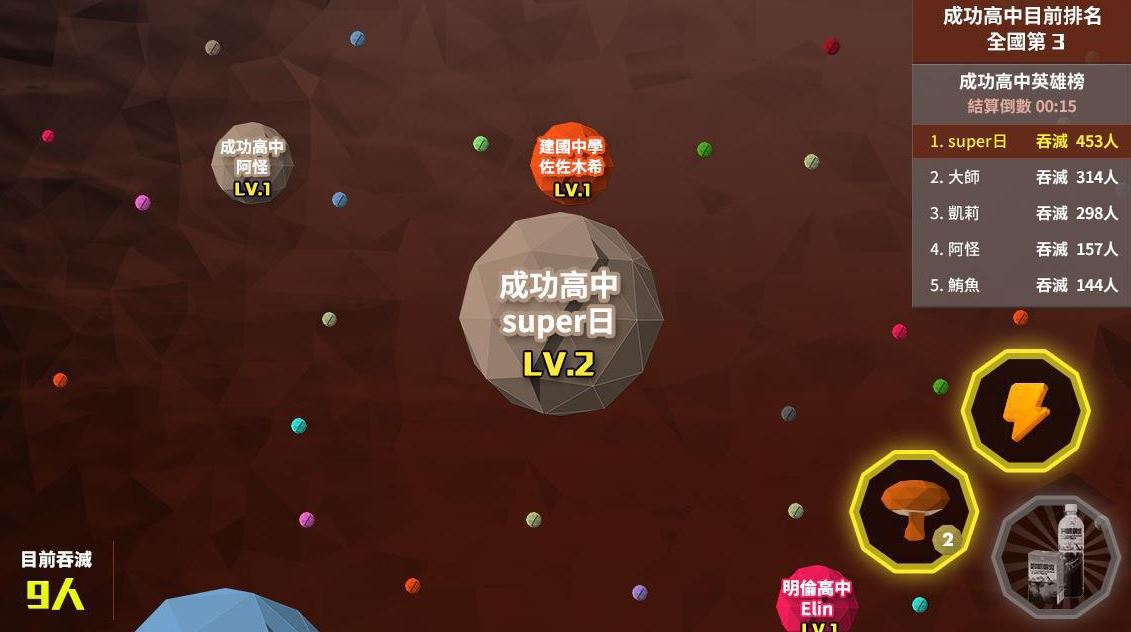 「校園戰爭:噬弱者」其實很簡單,遊戲中選好你的學校,就可以立刻進入遊戲,以「大吃小」的方式,吃掉別校,壯大自己的學校!