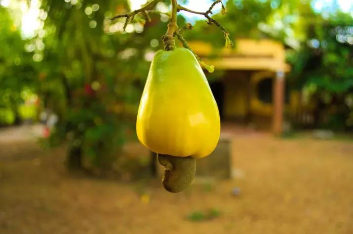 5. 腰果结果时,会有一个果体,那是假果 (果托) ,摘下来后可以作成果汁或果酱,下面的部分才是真正的腰果。