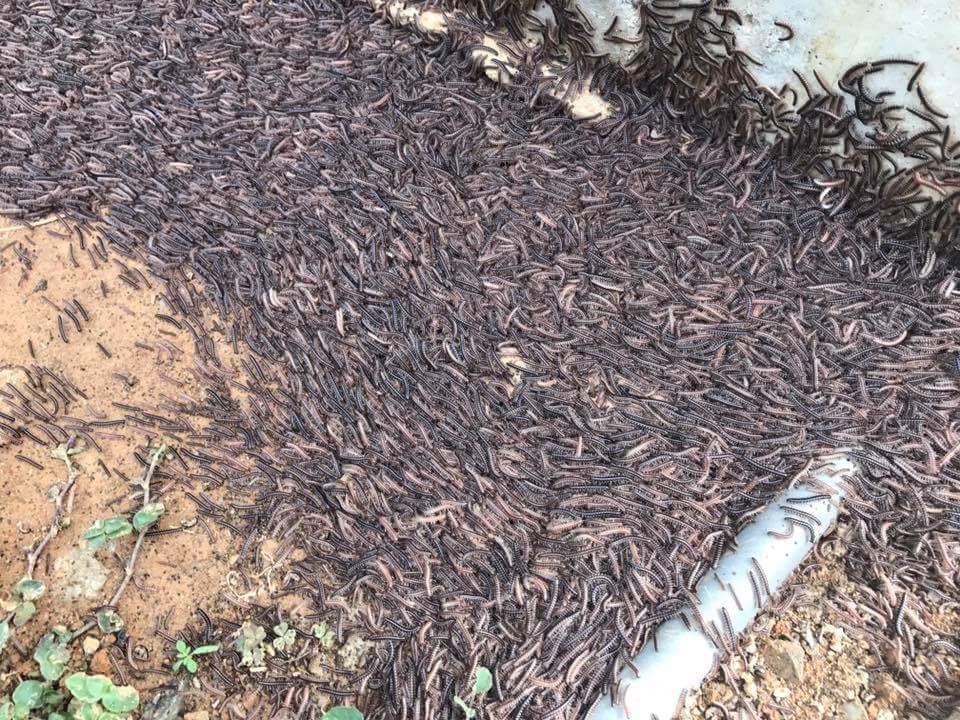 梅雨還沒有來,近期各地就已經豪雨不斷,上禮拜還發生了暴雨淹水的現象,而13日更是恐怖,澎湖東吉島竟然出現了水龍捲,而板橋、新莊在下午還落下來巨大冰雹,讓人害怕!氣象局表示梅雨將會在14日清晨起,將與西南氣流配合影響全台,而且有些地方會有雷雨,其他則是雨勢增強,可能到達豪雨等級,這波梅雨鋒面來襲的時間長,恐怕會超過一個禮拜!中央氣象局呼籲大家要注意安全。不過在豪雨來襲之前,在13日有網友在臉書粉絲團「爆料公社」分享驚人的畫面,一名網友王紹拍到自己桃園家的菜園旁邊,竟然爬滿了馬陸?!