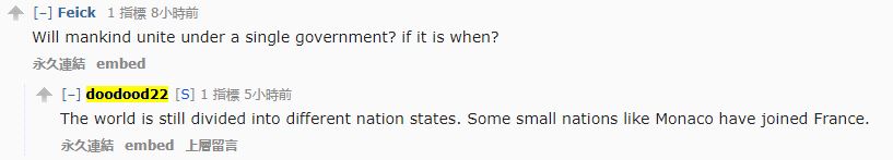 原PO「世界依然分為好幾個國家。但有些小國會跟大國合併,例如摩納哥就加入了法國。」