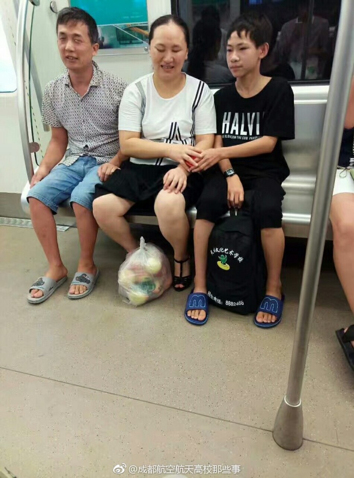 近日中國網友在微博「成都航空航太高校那些事」上分享了感人的畫面,看到一名年輕少年帶著自己兩位失明的爸媽一起搭地鐵,還小心翼翼的走在前面,當他們的「眼」。這感人的照片是「成都航空航太高校那些事」在21日發文時分享,原PO表示:「在成都一地鐵站看到了有愛的一幕,一位少年帶著患有眼疾的父母乘坐地鐵,成為了爸媽的眼!真的被感動到了。」