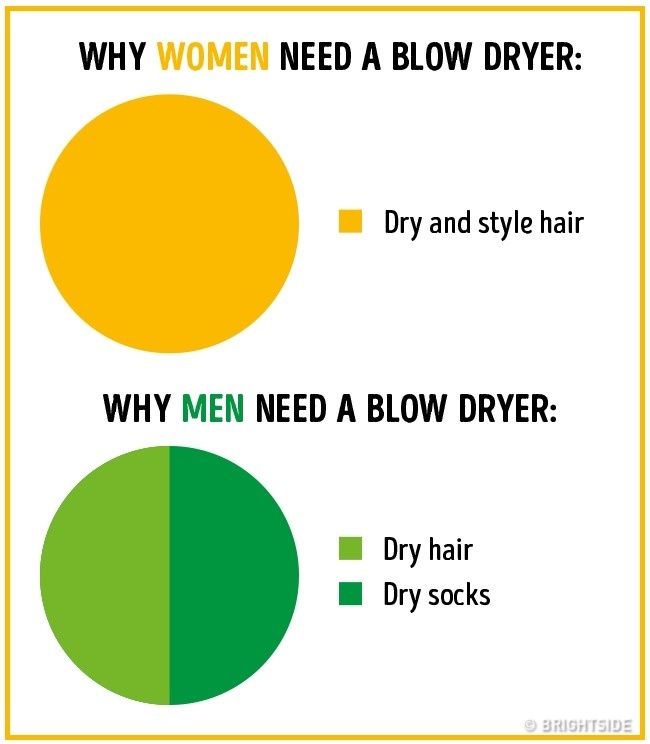 為何女人需要吹風機:吹乾頭髮;吹乾襪子。