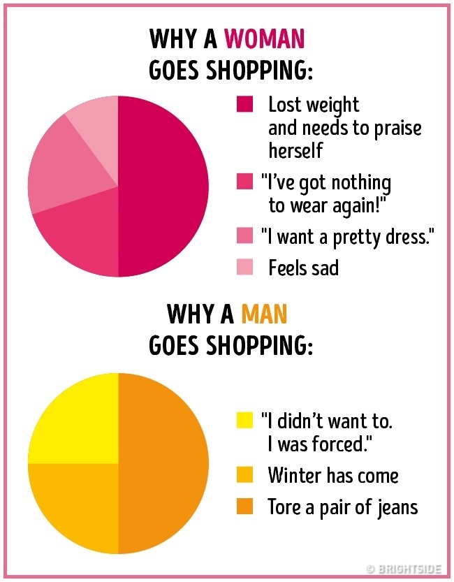 9. 女人為何逛街:減肥成功想犒賞自己;「我又沒衣服可以穿了!」;「我想要漂亮的洋裝」;心情鬱卒。