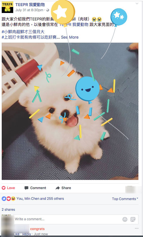 TEEPR小編:對,我們TEEPR有新成員加入囉!以後陸續會在臉書TEEPR我愛動物分享他的動態,請多多支持他!