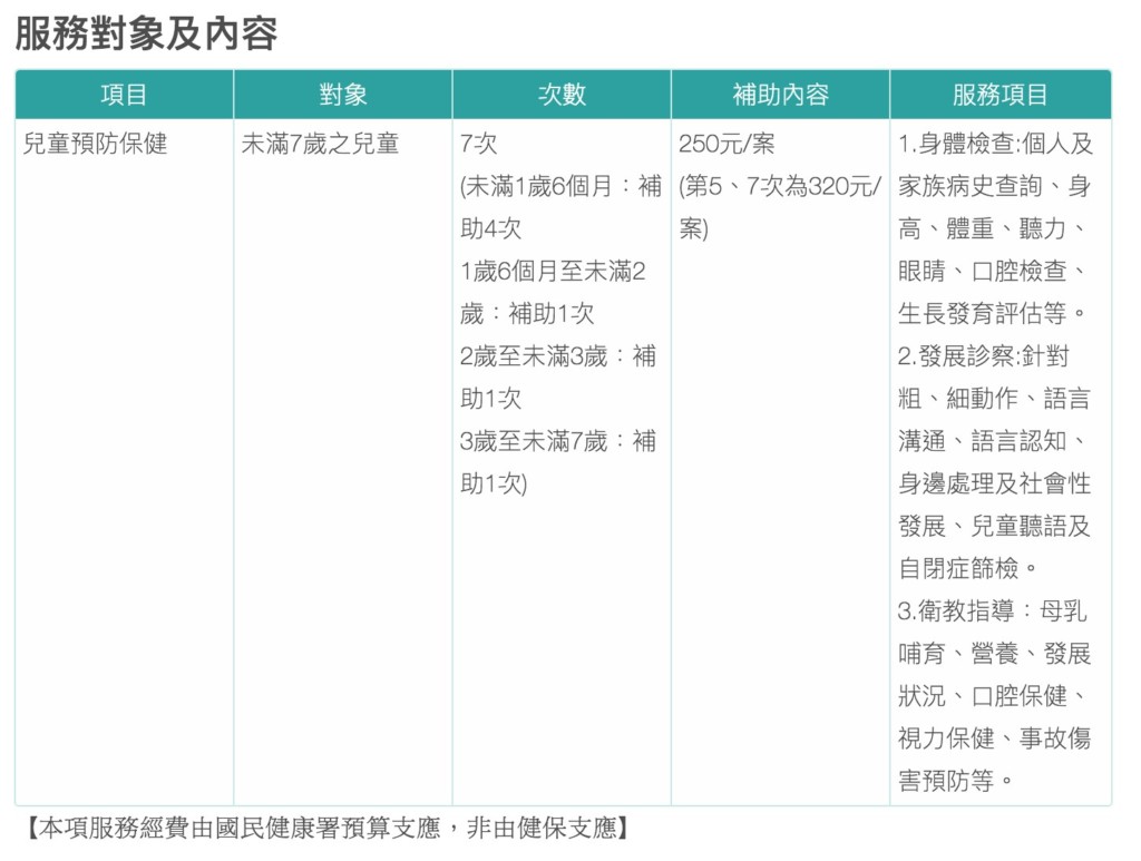 最好的是國健署會透過醫師,讓爸爸媽媽可以提供7次1對1的免費兒童衛教指導服務。如果有需要現在全國有大約3540家醫療院所會有提供兒童健檢服務,想要知道更多的朋友可以在這裡查詢: (國健署網站查詢)