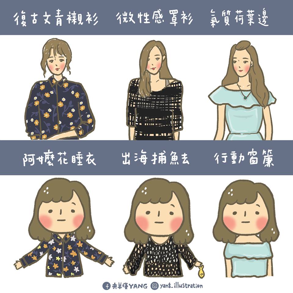 女生有時候會不會覺得自己的臉比其他人大,因此不管什麼造型或髮型等等,和別人比起來就是會差很多?就有位可愛的圖文插畫家「羊」在臉書粉絲團《央羊癢YANG》上,分享了一系列「大臉的各種時尚」,畫出女神跟一般女孩實際上的差異,真的是會讓小編這種普妹看完後笑中帶點哀傷的淚阿!