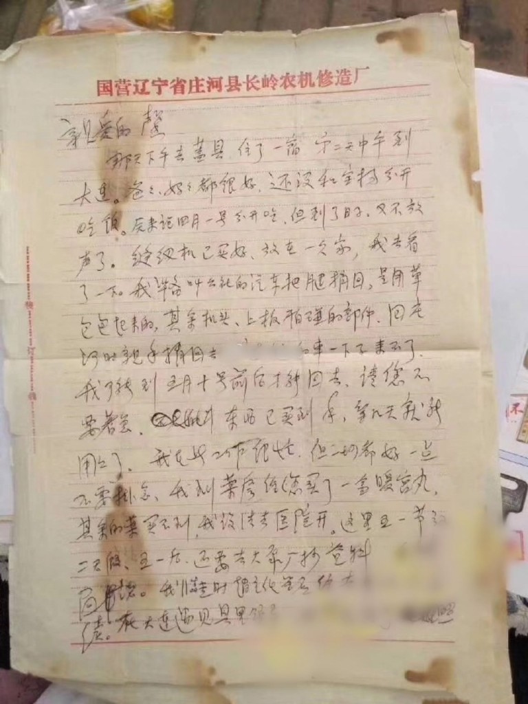 情書內容可以簡單辨別出是由「生」寫給「親愛的馨」,雖然都是一些平凡的家務事,像是「爸爸媽媽都很好」、「縫紉機已買好」,或是關心對方的身體等等,並不是很肉麻的文字,但讓人看了覺得非常溫馨,最後還寫著「一切尚好,不要掛念,好好保重身體」。