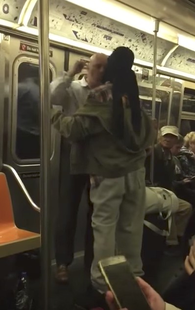 後來白人說到:「大家都看到了,你剛剛在大家面前跟那邊的老先生說,只要他在碰你一下你就要X他!我們都聽到了,這是地鐵,大家都會碰到對方。」黑人說:「你看起來不錯喔,你看起來很好,我現在就想X你!」白人生氣的說:「你現在該停了,我不喜歡你這樣對我說話。而且只要有我站在這裡,我不會讓你X任何人!你可以自己打槍打到死,但你誰都不能X!」