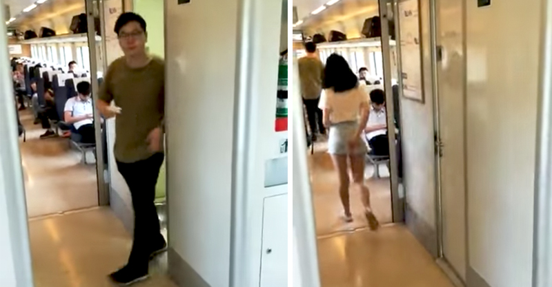通常在火车、飞机上,应该没有多少人会一起上厕所吧?但近日中国网友就拍到的一对男女从火车上的厕所走出来。男子一边拿纸巾擦嘴,女的走出来后还调整自己的内裤。由于两人在厕所太久了,所以外面的乘客也开始偷偷录影才看到这种景象。