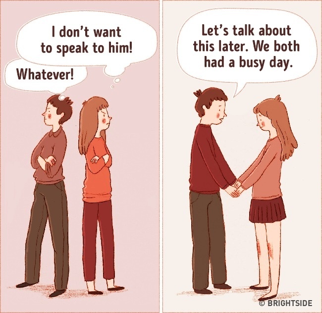 喜欢:两个人都不低头:「我再也不要跟他说话了!」「随便妳!」真爱:总有一方会先破冰:「我们等等再讨论这件事好吗?毕竟我们两个今天都忙坏了!」