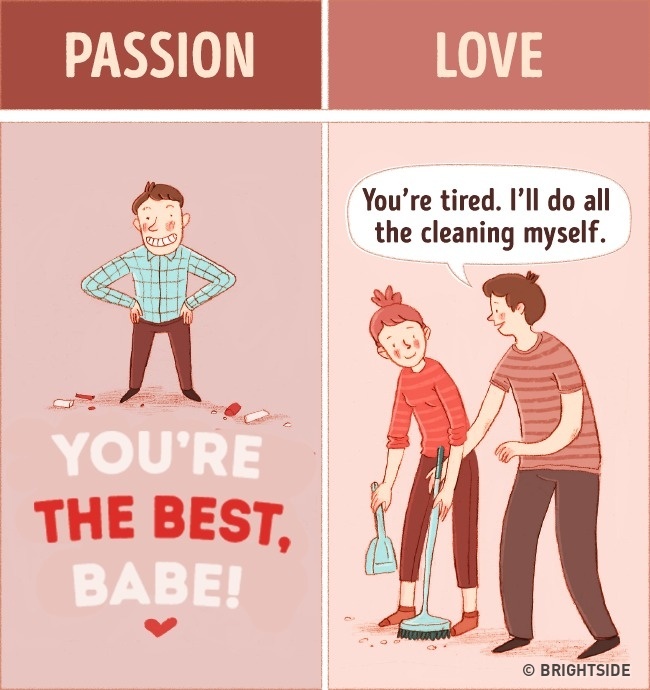 喜欢:当你下班回家还要收拾凌乱的房间时,他只会在一旁说:「你最棒了宝贝!」真爱:他会跟你说:「你太累了,让我来就好!」