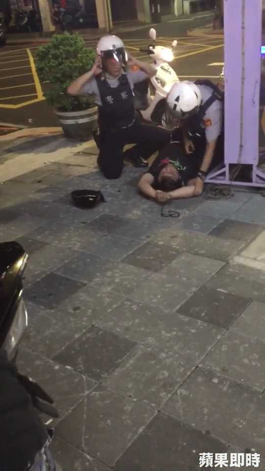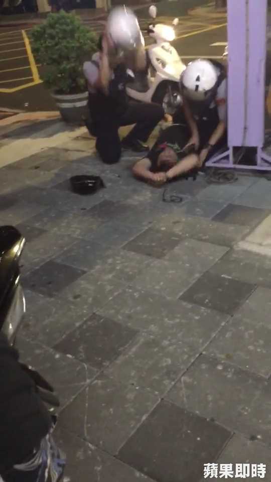 其中一名員警將嫌犯壓制在身下,這時旁邊的員警突然把頭上的安全帽拿下來,並往嫌犯的頭部砸過去,這一幕也被該位民眾拍下,員警發現後立刻出聲制止要民眾別再繼續拍攝,但民眾還是將該段影片提供給媒體,認為警方的行為需要檢討。