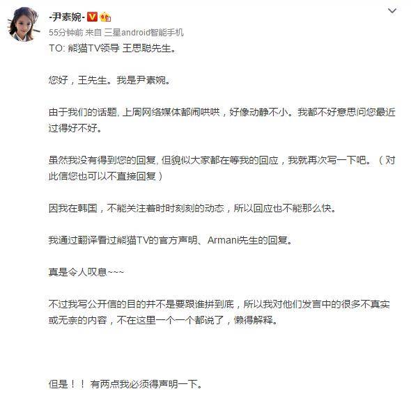 南韓人氣主播尹素婉,擁有甜美臉蛋和火辣身材,一直都大受宅男歡迎。   2016年,王思聰以天價請她來熊貓TV直播,據悉簽約金高達3千萬人民幣 (約1.3億新台幣)! 廣告1   當時,網友看到她的舞姿後都被深深迷到,真呼「這錢花的值」!   可是最近雙方卻鬧翻了,尹素婉在公