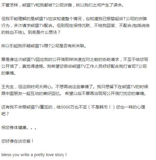 日前她再次寫了一封公開信,並提出了新證據,希望熊貓TV能夠配合討薪: