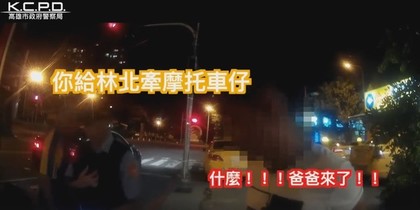 警方越問覺得越可疑,男子聲稱住在屏東市,但調閱車籍資料發現機車是在高雄仁武,車主也並非男子父親的名字,男子不斷強調自己沒有騎到別人的車,要警方儘管查沒關係時,結果旁邊突然有位大叔現身:「你騎得很不錯齁!你給林北牽摩托車!你吃好膽藥仔嗎?」