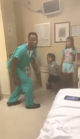 Caught in the act of caring! Dr. Chima Matthew was treating a young patient when he noticed her siblings seemed worried. He decided to lighten the mood by playing music and asking them to join him in dancing. Mom said she’s never seen a doctor so passionate and natural with kids, adding “that two minutes out of his life made a lasting impression on ours.” Way to go, doc!
