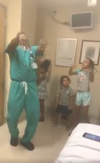 住院對小孩來說多半是很可怕的經驗,但佛羅里達州傑克遜維爾的沃爾夫森兒童醫院 (Wolfson Children’s Hospital) 的馬修醫生 (Chima Matthew) 絕對是超會安慰小小病患的醫生!有天一位叫奧托姆 (Autumn Moses) 的小女孩因為喉嚨痛得厲害,媽媽帶她和兩個年幼的姊妹溫特 (Winer) 和克瑞斯林 (Kristlynn) 一起到醫院掛急診,奧托姆曾經因為咽喉炎在這間醫院治療,而當馬修醫生進入急診室的時候,看到三個女孩滿臉擔心的站在角落,醫生便決定先讓她們開心起來。