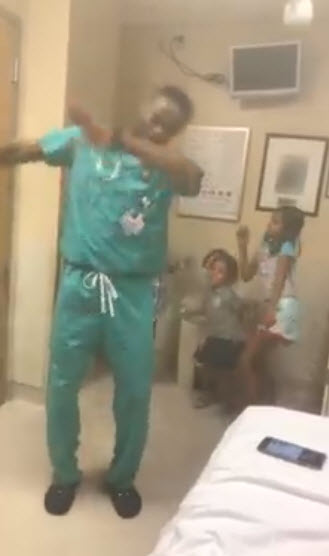 馬修醫生拿出手機放了饒舌團體Ayo & Teo的歌,然後隨著音樂跳起舞來,還跳著搞笑的「殭屍舞步」讓三個小女孩開懷大笑,接著馬修醫生示意女孩們跟著一起跳舞,房間裡充滿了開心歡樂的氣氛和孩子們的笑聲,女孩的媽媽也拿起手機錄下這溫馨的畫面。