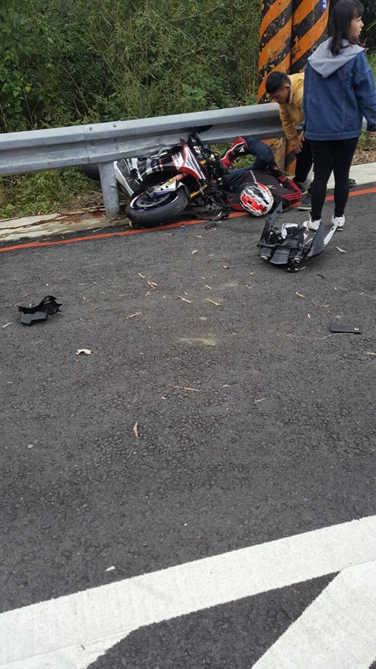 在台湾对于重机并没有完善的规范,许多汽车驾驶在路上看到重机,也都会下意识地将他们列为是跟一般摩托车的想法,或许会刻意抢道或逼车,最后酿成车祸。一位网友就在脸书上分享,一位重机骑士疑似因为在过弯时超速,导致连人带车被塞进一旁的护栏空隙内,右脚完全被折成一个「O字型」,痛苦的倒在地上,旁边的经过的人立刻下车帮忙。