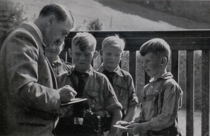 19. 阿道夫·希特勒在1930年代幫希特勒青年團的孩子們簽名。