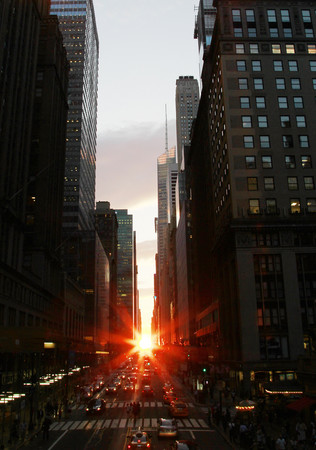 「曼哈顿悬日」通常在棋盘式道路规划的都市比较容易出现,恰巧高雄的道路分配近趋于这种市区规划方式,而美国著名的景象便在曼哈顿42街,尽管「悬日」只有短短15分钟,但仍吸引大票观光客朝圣。