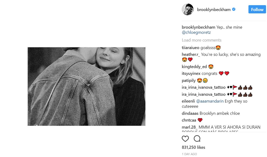 布鲁克林和克萝伊摩蕾兹早在2014年就曾交往,可是两人当时还很年轻,交往时非常低调,结果很快就分手了。两人在去年也有过一次短暂的复合,今年夏天布鲁克林搬到纽约学习摄影后,他们又再次重燃爱火。
