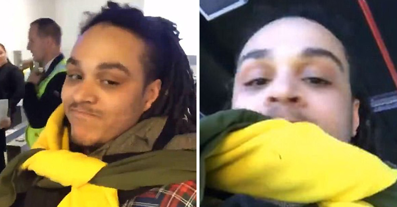 根據英國航空公司的工作人員表示:「萊恩無禮的行為讓他們無法接受,所以他們不讓他登機,但萊恩不願意離開,他們只好請保全人員把他驅離。」萊恩當然超不爽,錄下影片PO上推特寫著:「我在冰島的凱夫拉維克國際機場被拘捕了,因為我的行李沒有空間放進所有的衣服,所以我只好把衣服全部穿在身上,然後他們不讓我登機,這是種族問題還是什麼…?」