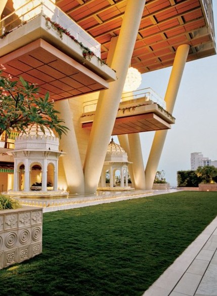 Mukesh Ambani就是被封為「印度馬雲」,他為家人蓋了一棟私人大樓,叫做「安蒂拉」雖然總共是27層樓,但是因為每一層樓都是挑高2~3倍,所以實際上等於一般大樓的60層樓高。這棟建築物甚至還被入圍「世界十大超級豪宅」地板是用昂貴地白色花紋大理石磚鋪成、建有絕美空中花園、直升機停機坪、水療館、按摩室、健身俱樂部、劇場宴會廳、人工避暑雪屋、圖書館、停車場、電梯…等設備,讓家人或是來訪的親友使用。