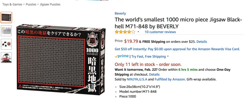 製造商Beverly推出了1000片跟2000片的版本,讓大家絕對不會無聊,而且可以從美國或是日本的Amazon上直接購買喔!價錢約台幣600元: