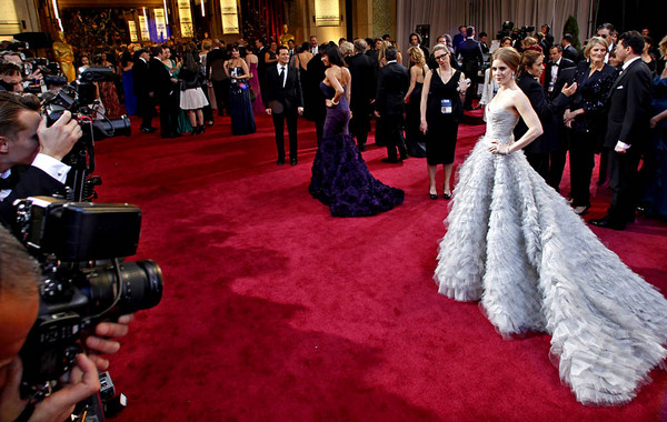当然奥斯卡红毯除了指引明星们方向之外,其实也有着止滑的功用,毕竟大家都是穿皮鞋或高跟鞋,一不小心就可能出了洋相。而在杜比剧院前铺设的红毯面积约5万平方英尺 (约1405坪) ,花费了18名人力以及900个小时才完美铺设完成;只是这样费时费工又花大钱的红毯,在典礼结束后就会全部都被销毁,因此大家每年看到的都是全新的一张红地毯,绝对不会重复使用!