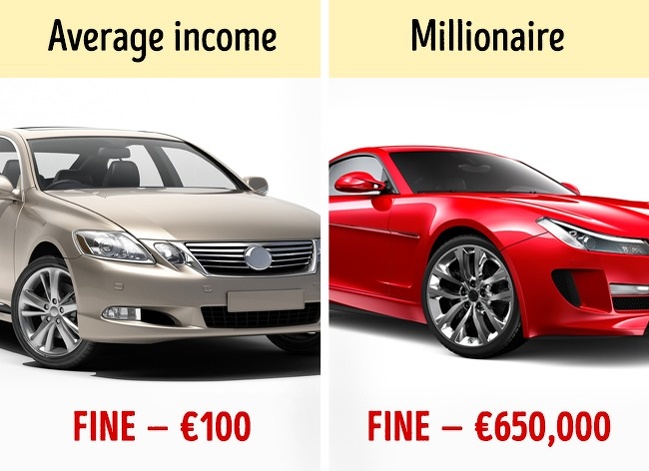 在瑞士,你可能會因為加速而交出世界上最鉅額的罰款。當地的一名司機以每小時180英里的速度行駛,他收到65萬歐元的罰款。問題是,這個國家的罰款不是固定的,而是取決於你賺的錢數量。你賺的越多,罰的就越多。這是他們的正義觀點。