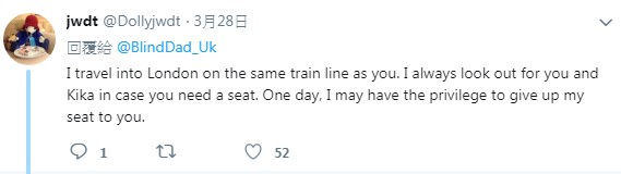 「我跟你搭到同一般地铁,我当时一直在留意你跟基卡,怕你们需要座位,希望有一天我可以把座位让给你们」