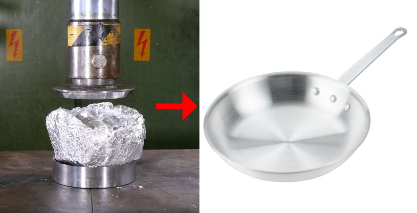 他們用幾的步驟,利用液壓機把一堆鋁箔紙變成一個真的煎鍋!