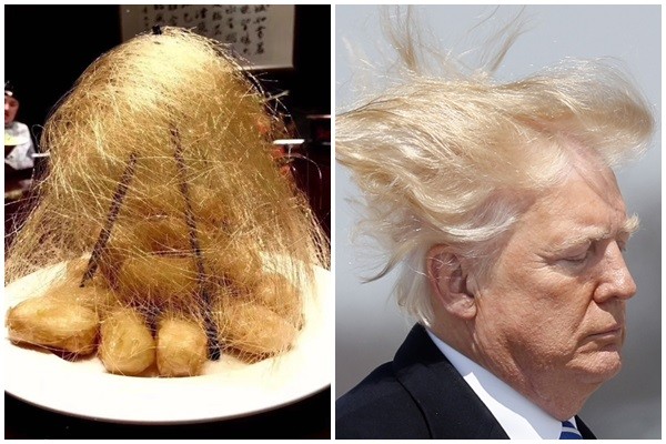 看起來真的頗美味的耶!川普「髮型」話題屢次登上媒體版面,連他母親的「半屏山」造型也非常搶眼。近日有大陸網友將川普的金黃色髮絲與甜點「拔絲」相比擬,更把這道甜點取名為「拔絲川普」,笑翻大眾。