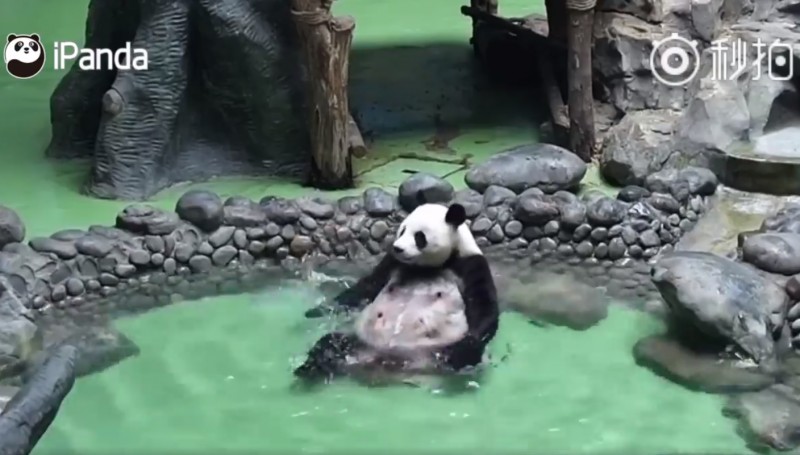 而前阵子外媒《Shanghaiist》就分享了一段中国成都熊猫影片,可以看到熊猫就像一个土豪一样,很惬意地玩水花!