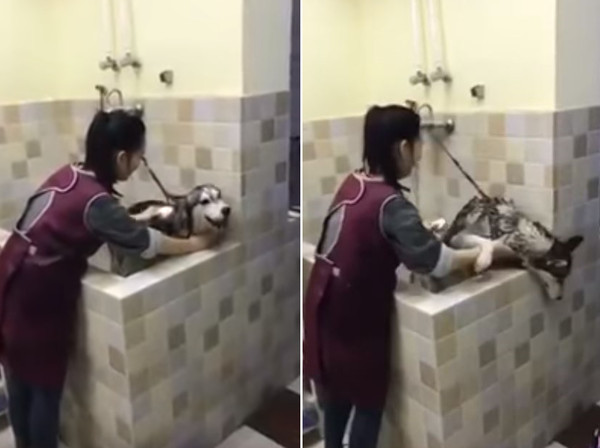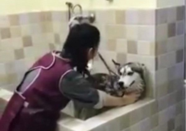 什麼!月月竟然會講話!近日在網路上瘋傳一段10秒短片,一隻哈士奇被帶去寵物店洗澡,但也才剛開始被沖身體,就哀嚎聲不斷,甚至還嚇到想要逃走;重點是牠還不斷碎碎念,網友看完後用12個字去翻譯,結果跟哈士奇說的語調完全吻合,大家笑翻。