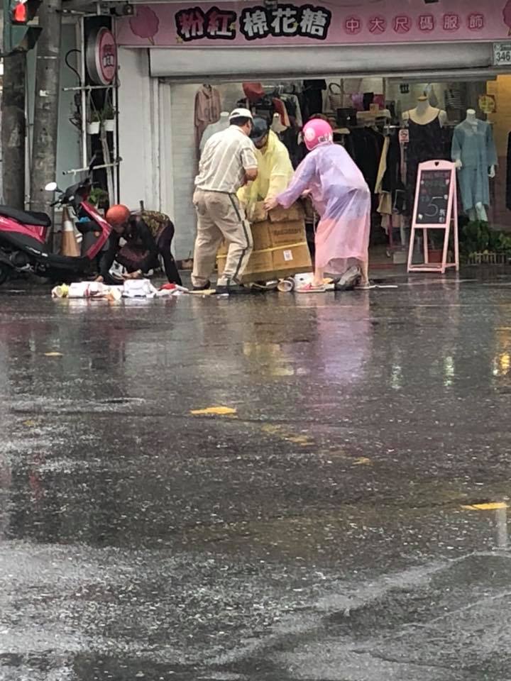 真的很多台湾人都很有爱心!花莲因9日有锋面靠近,整天都在疯狂下大雨,一位在做回收的阿嬷纸箱被淋湿整个破掉,东西掉得满地,没想到黑猫快递员看到之后,随即过去帮忙,全程被马路对面的民众拍下,大赞快递员善心会有好报。