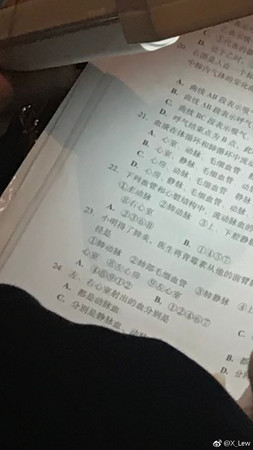 就有網友非常好奇這位妹妹到底在苦讀什麼,還特地將照片放大來看,結果一看這些考題都是和呼吸或血液相關,因此推測妹妹應該是在解生物的題目,也才會讓大家認為應該是要參加高考的認真學生,只是也想看偶像的演唱會,才會出現這樣的畫面。