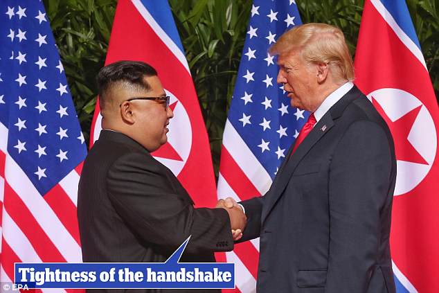 根據肢體語言專家派蒂‧伍徳 (Patti Wood) 觀察,川普和金正恩會面後,兩位領袖在這場會面中都想要居於掌控地位。「川普很喜歡當領導握手的人,他率先伸出手,讓大家覺得他地位比較高。我覺得很有趣,因為在商場上,通常是地位較低的人先伸出手。」但是派蒂補充道:「他們兩人幾乎同時從舞台的兩側走出來,以相同的速度走向對方,表現出平等的權力。」