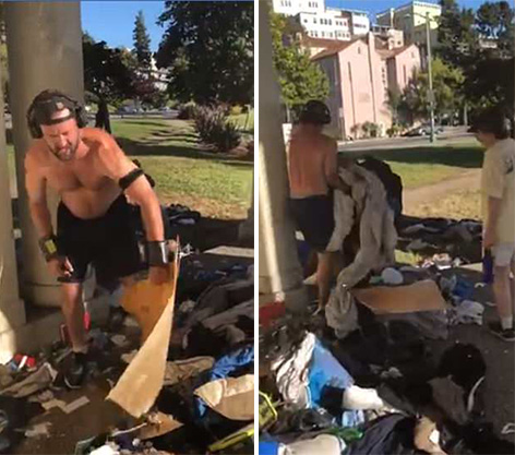 美國加州奧克蘭 (Oakland) 有名慢跑人士,在周五時行經梅里特湖 (Lake Merritt) 旁邊的公園時看見一名街友的私人物品,這明慢跑者便開始將東西亂丟、亂踢,甚至還將街友的棉被等物品丟到湖裡,惡劣的行徑被經過的民眾路下並上傳至臉書,引起許多網友關注。