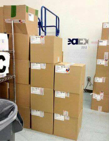 從網友PO出的照片中可以看到,上班的人應該是在一家快遞公司,而在公司的一角堆滿了大大小小的箱子,看起來就像是在整理貨物,準備出貨中;只是當照片換個角度之後,卻發現其實後面是簍空的,而且裡面還有人坐著在睡覺!