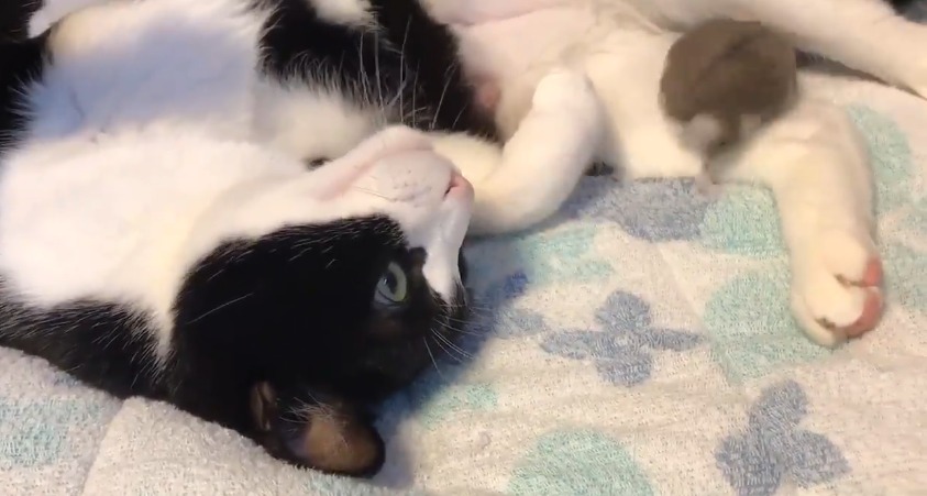 小倉鼠踩賓士貓肉身逛大街 下秒「扭頭壓制」:朕正好需要個枕頭~
