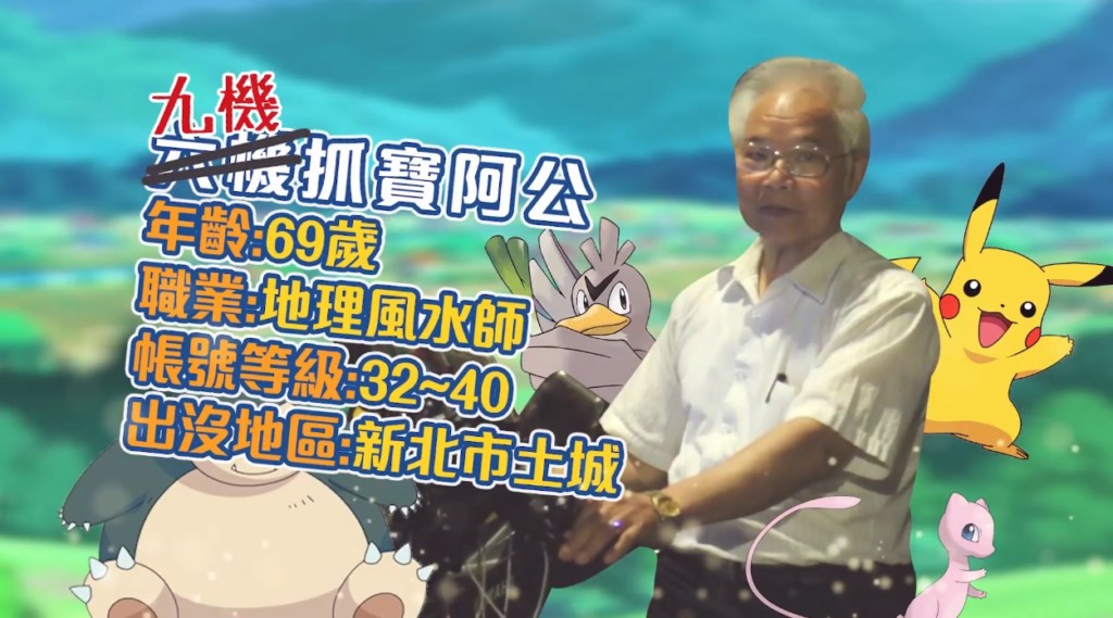 外國人都傻眼!抓寶阿公「10機綁鐵馬」圍捕寶可夢 花10萬變老版小智