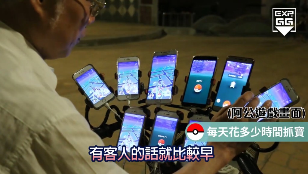 只是手機怎麼會從六支進化到九支?阿公表示,等帳號都升到30級,才會放腳踏車上,不然放出來也不好看!阿公還特別介紹,他買的特殊行動電源,可以充電20小時,才能夠讓他順利用九支手機狂抓寶。阿公也透露,他一個月會花一萬多課金,每一隻神奇寶貝都是他自己抓的,他覺得抓寶可以跟人多多交流,還能防止老人痴呆。