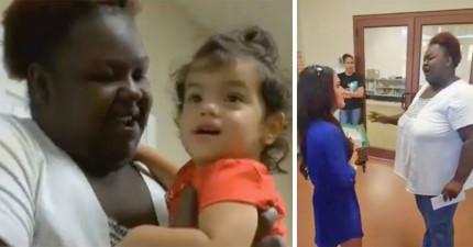 穿藍色的媽媽跟這名保姆講話時把這整段過程錄下來,為的就是要等她把手上的信封拆開!