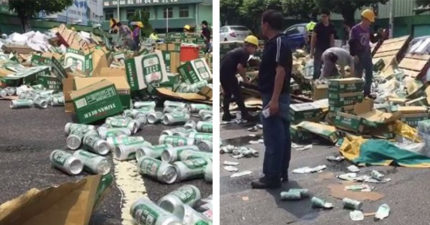 賠慘!聯結貨車斜坡大翻覆 金牌撒滿地匯流成小河…司機要哭了