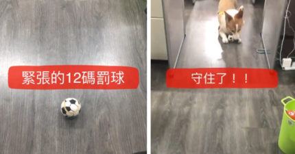 把拔緊張12碼罰球 世足柯基隊「萌氣守門」:別肖想進球!