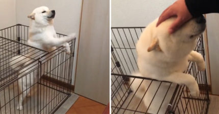 鏟屎的你終於回來!白柴飛機耳+羊咩哭哭聲 趴籠子瞇眼討抱萌炸